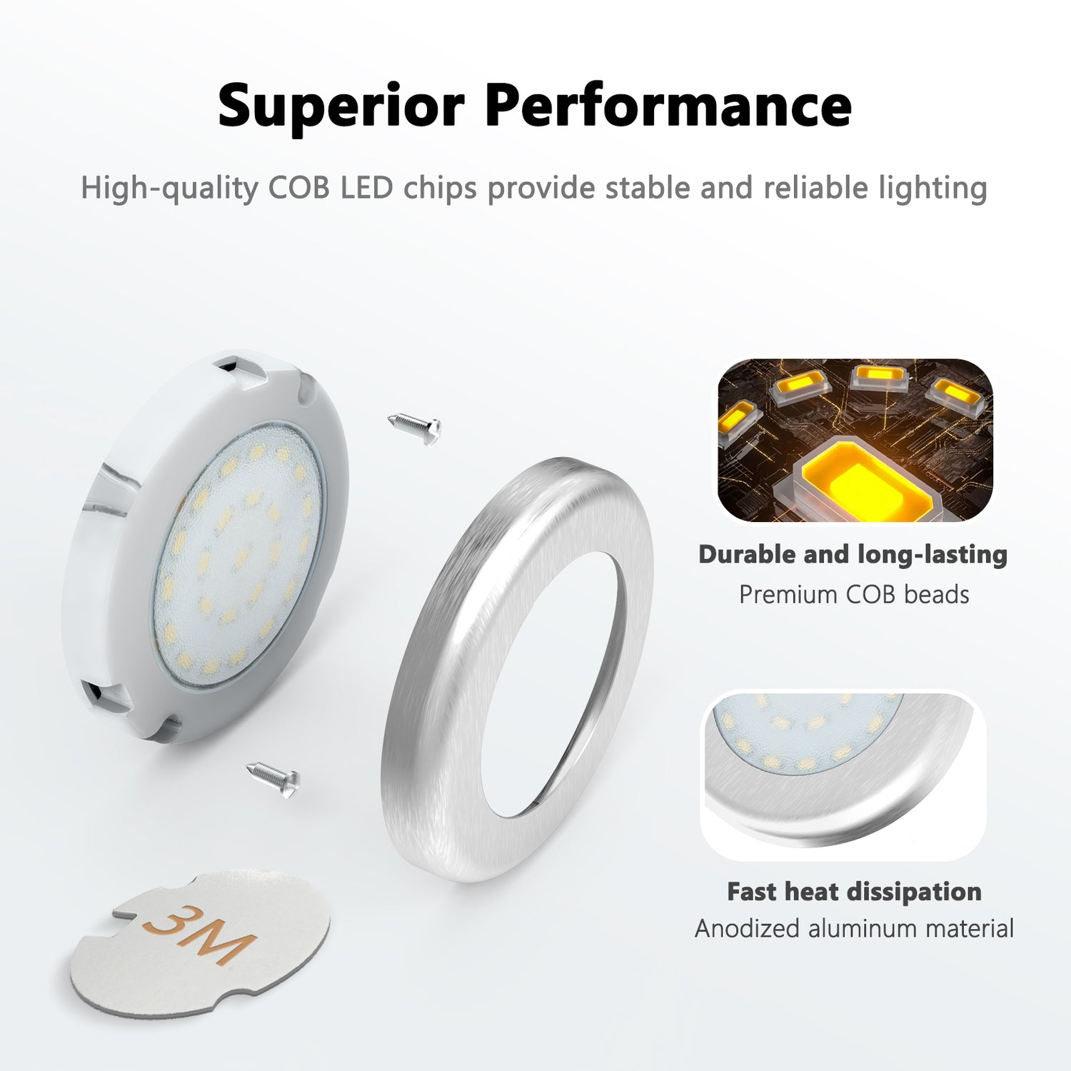 CB10 12V 1.8W Undercabinet Puck Light 4000K Surface Mounted LED Panel for Closet & Display Cabinet