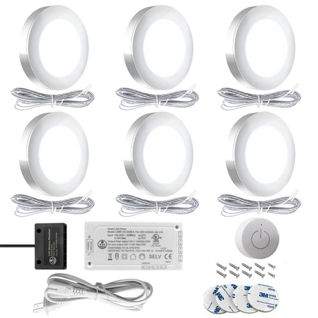 4 PCS PL05 12V 1.8W Silver Cabinet Puck Lights With White LD68 12V 22W Driver