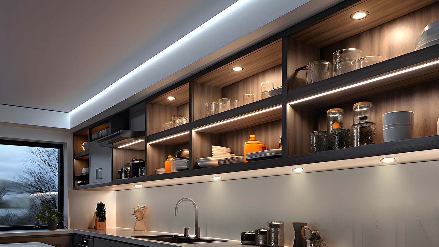 Upgrade your space with plug-and-play APE2 linear lighting kits—featuring sleek aluminum profiles, smart App/voice control switch, and LED driver. Perfect for seamless lighting in kitchens, wardrobes, and display shelves.